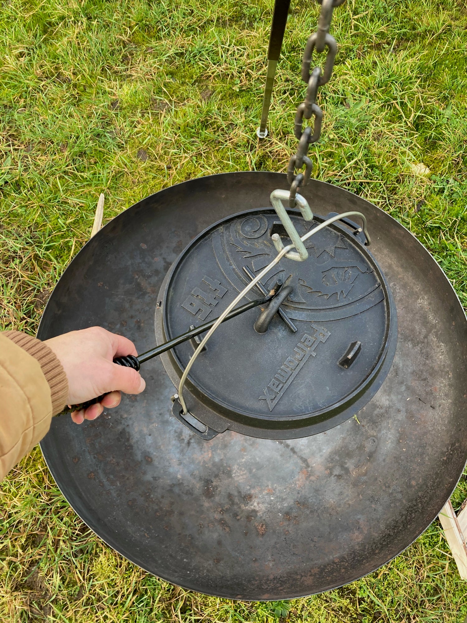 Aan de driepoot kun je een rooster of een dutch oven hangen. Elke poot is in hoogte verstelbaar en de voeten hebben een extra inzetstuk voor optimale stabiliteit. Je kunt tot 40 kg ophangen.