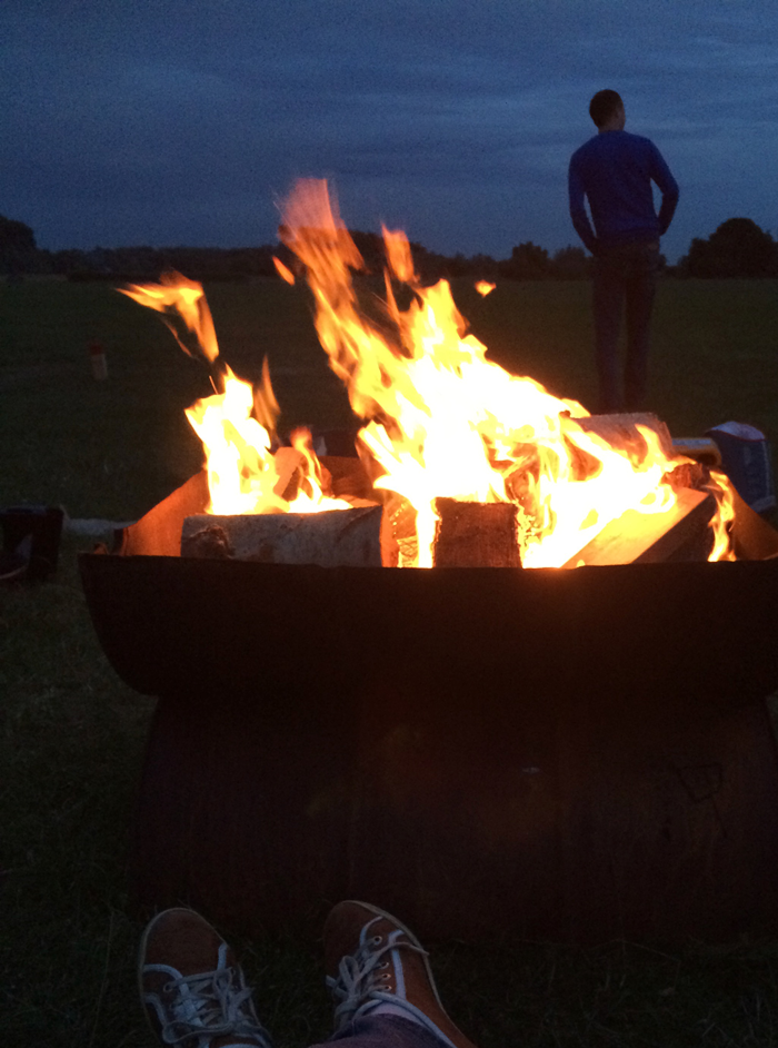 "Mijn vriend is een echte ik-wil-vuur-maken firemaster. Voor zijn verjaardag gaan we een vuurschaal met BBQ driepoot huren."