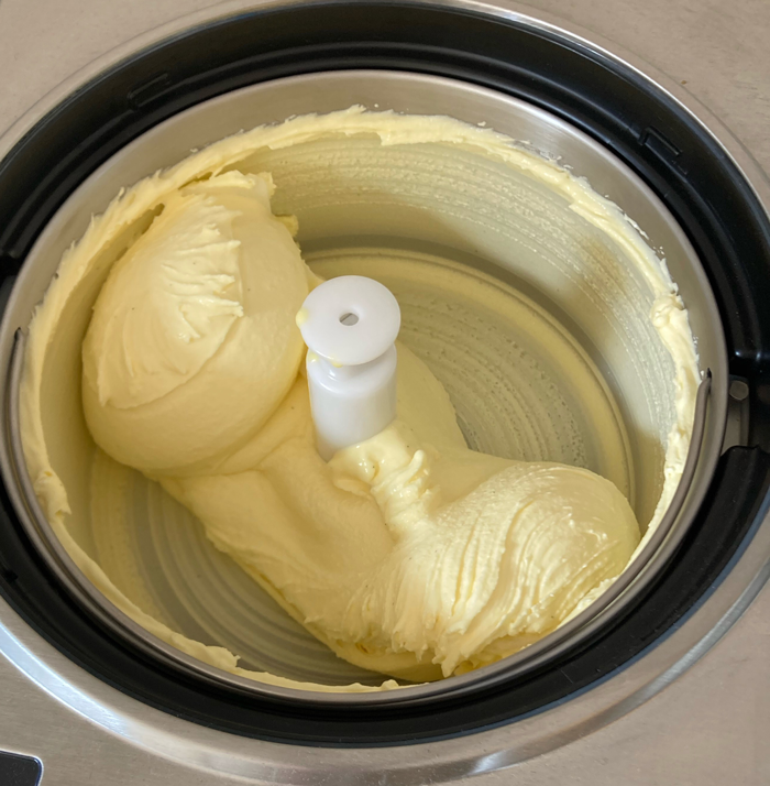 De bereiding kun je meteen in de machine gieten, je drukt op de startknop en na 40 min draaien heb je heerlijk ijs.